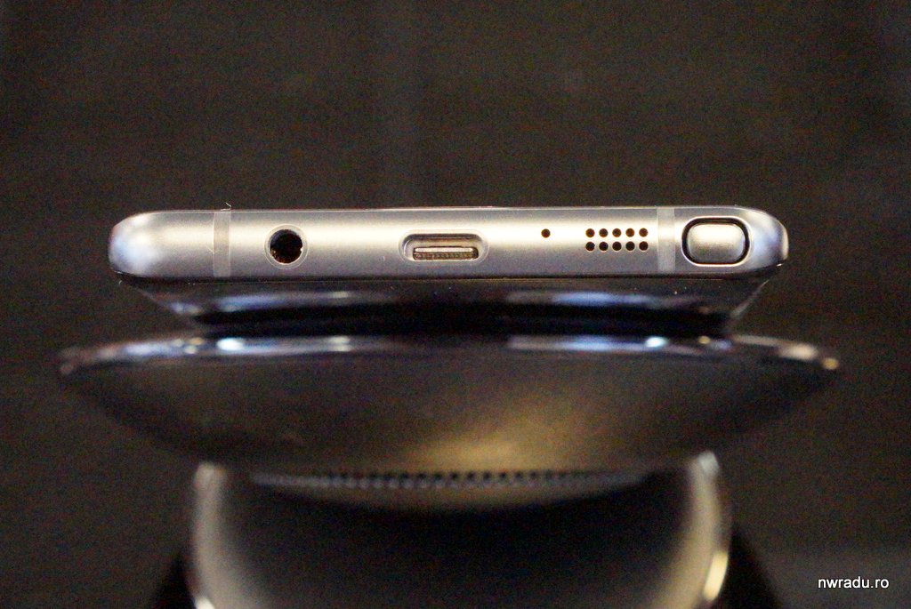 Dincolo de asta, telefonul mi s-a părut chiar ușor. De asemenea, ecranul este în continuare curbat pe ambele părți, dar foarte puțin, aproape insesizabil. S-au dus vremurile de la primul Note Edge și de la S6 Edge, când curbura avea o rază mult mai mare. Nu regret asta, este mai ușor de folosit, singura problemă este că nu mai arată la fel de spectaculos. Curbura mai mare a ecranului făcea modelele anterioare să pară mai speciale, mai elegante. Acum este la nivelul “bă, mi se pare mie sau e curbat acolo la margine? Da, chiar este!”. De asemenea, sticla de pe spate mi s-a părut mai subțire și asta la fel, taie un pic din eleganța modelului. Asta a fost impresia mea, că a devenit un pic mai banal.