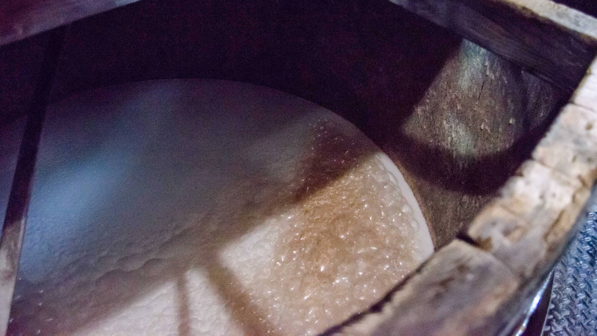 Știți deja procedura, este cea de mai sus. Zaharurile din orzul măcinat și tratat cu apă fierbinte (malțificat) încep să fie scoase în evidentă în vasul de mash tuning, cel mai mare din distilerie.