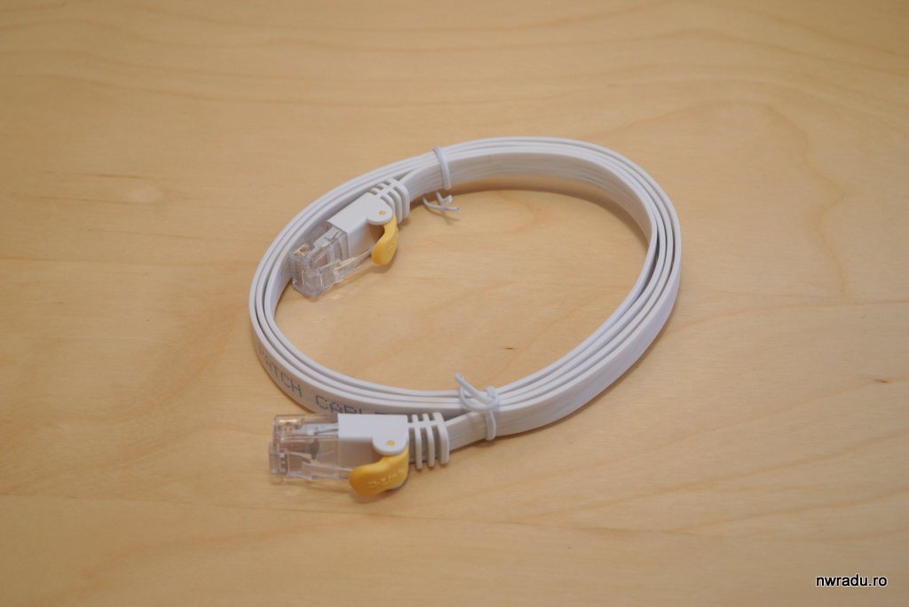 DIR-880L este o unitate albă, bine făcută și cu aspect plăcut, deși ușor cam mare. Mi-au plăcut antenele, care au o formă ceva mai inedită, și mi-a plăcut mult cablul inclus în cutie, un cablu UTP alb și plat. Îți dă impresia că ai luat un router premium. Sunt incluse până și două șuruburi cu dibluri pentru prindere în perete.
