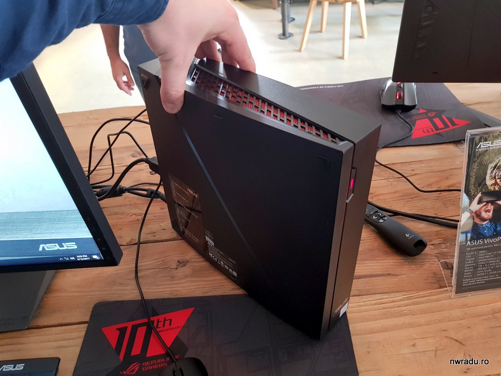 Configurația văzută de mine includea procesor Core i5, placă video GTX 1060, stocare 512 GB, 8 sau 16 GB memorie RAM la 2400 MHz. Este atât de mic încât sursa este externă, ca la laptopuri.
