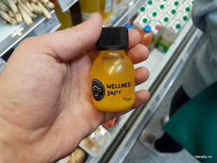 Chestii din astea n-am băut și nici nu intenționez. Se numesc Wellness Shot și costă 5 lei, au 60 ml de suc/fresh/smoothie. Cu un pic mai mulți bani iau ingredientele și-mi fac un litru de smoothie la blender.