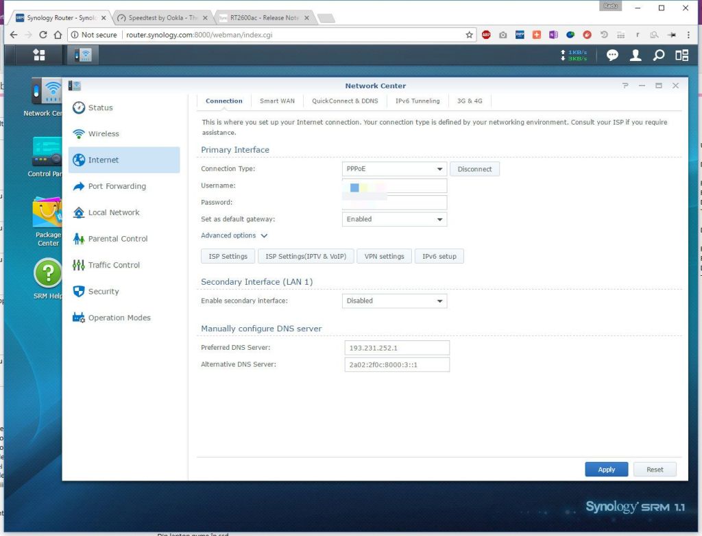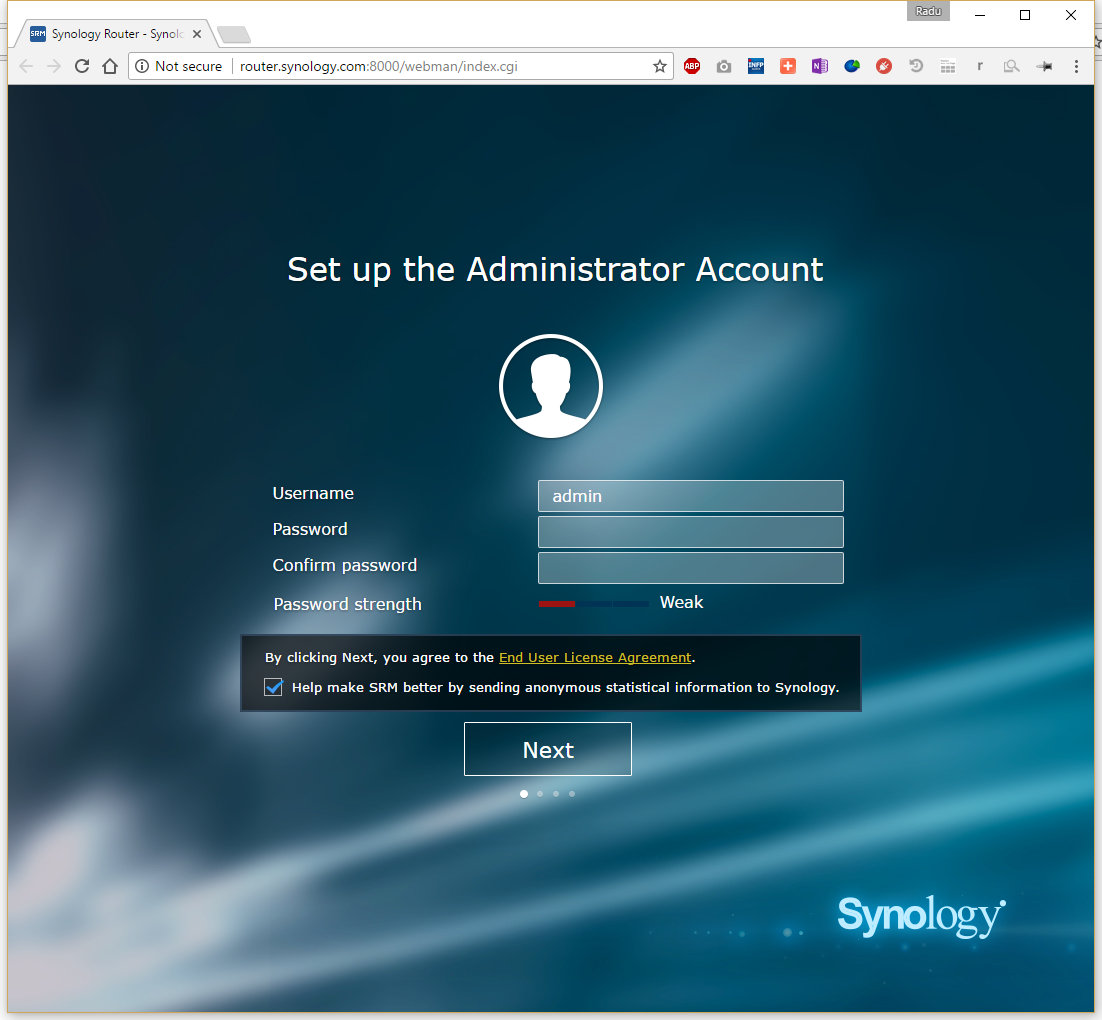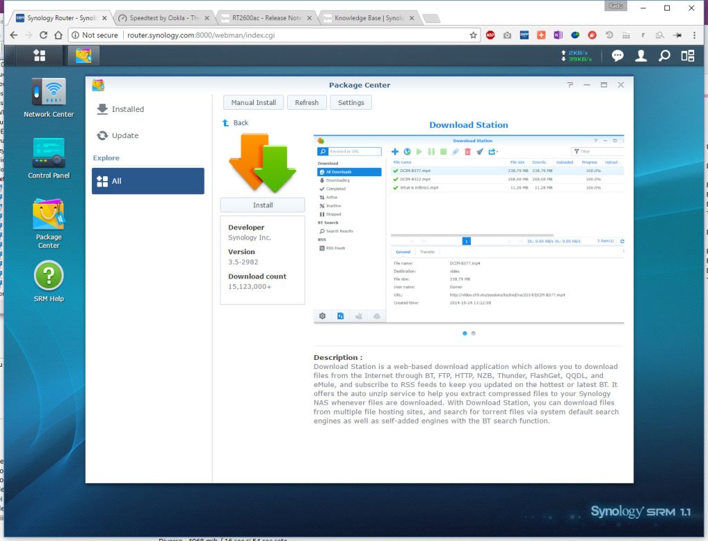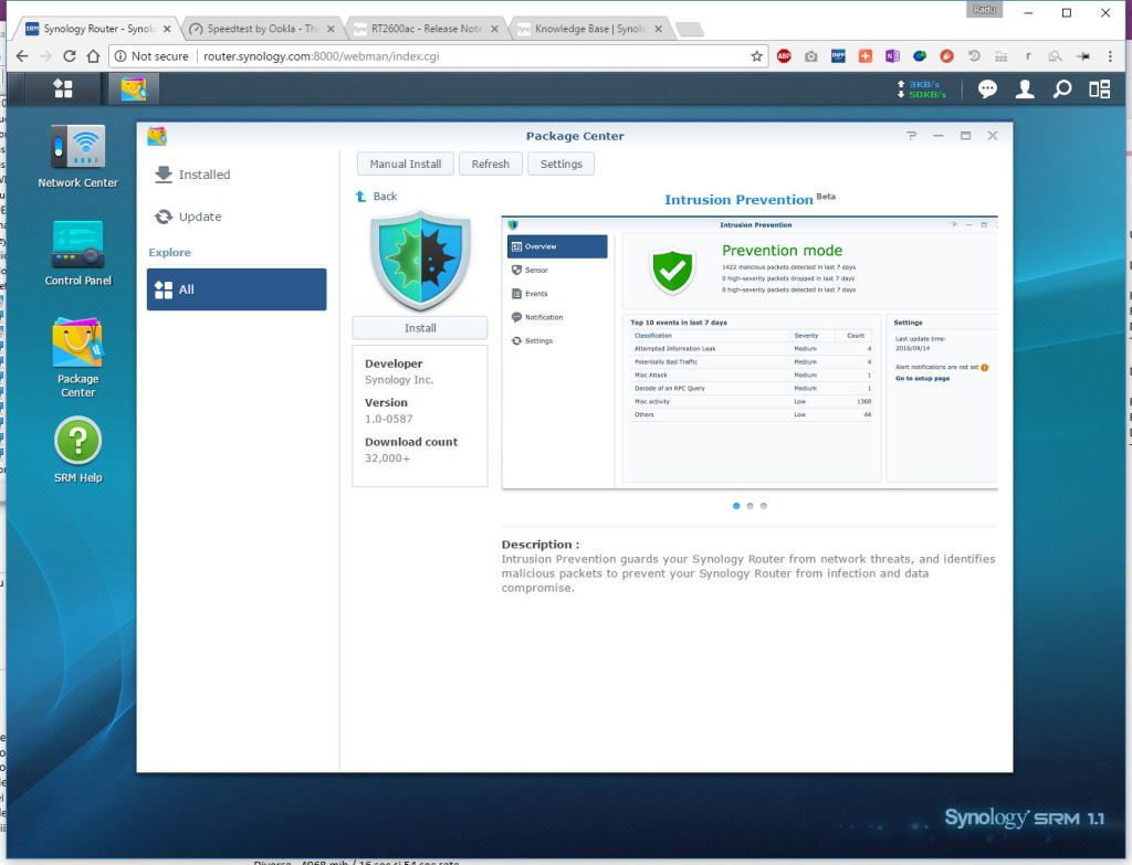 Fiind un Synology, mă gândeam că poate va avea interfața specifică NAS-urilor și așa a și fost. Este total diferită de orice firmware de router văzut de mine, fiind un software foarte complex, cu multe posibilități de configurare și cu opțiunea de a instala gratuit pachete suplimentare ce dau noi funcții routerului.