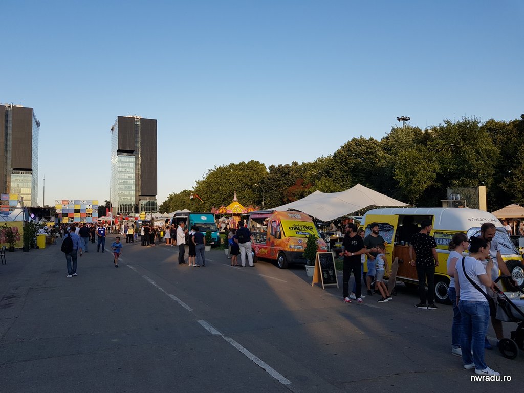 Noi am fost joi, în prima zi. Ține până duminică în noapte, cu concerte în fiecare seară. Sunt atât de multe tonete de mâncare încât le-au aranjat pe zone și categorii – avem zone cu burgeri, zona cu pește și fructe de mare, zona cu pulled pork șamd. Sunt multe de încercat (dificultatea este să vă hotărâți cum și de unde), iar concertele au loc pe o scenă din capăt, sunetul lor nederanjând zona principală de festivități, ceea ce sunt sigur că va bucura pe mulți vizitatori.