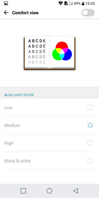 Butoanele Android-ului sunt pe ecran, așa că software-ul permite schimbarea ordinii lor. Camera foto se deschide la o apăsare dublă pe Volume Down. Îmi place că telefonul include opțiunea de a filtra lumina albastră, ceea ce face ecranul mult mai confortabil pentru ochi în lumina slabă a serii și nopții, dar nu mi-a plăcut că n-au inclus posibilitatea automatizării activării acestuia în funcție de oră. Trebuie să o faci tu, manual.