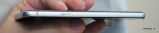 Butonul on/off este în dreapta, cele două butoane de volum în stânga, portul microUSB și jack-ul audio în partea de jos. SIM-ul și microSD-ul intră prin partea stângă.