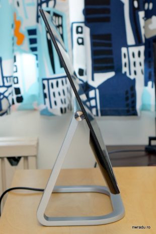Cu puțină atenție la poziționare, acest monitor poate părea fără cabluri sau cu cel mult unul și acela nu foarte deranjant, deoarece nu atârnă din spatele său, ci pornește direct de la nivelul bazei monitorului.