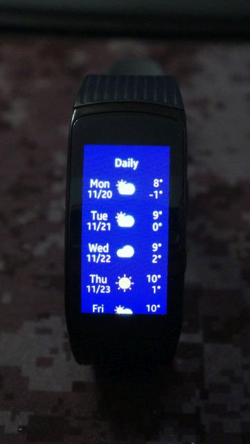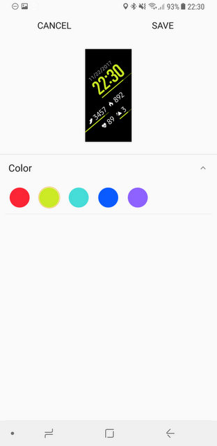 Instalând aplicația oficială Gear, veți putea modifica și configura mai rapid brățara, în special cu noi fețe de ceasuri. Vreo 15 sunt incluse, altele sunt disponibile pentru download, inclusiv unele contra cost. Fețele incluse sunt în generat futuriste și se potrivesc bine cu brățara, iar ecranul de rezoluție mare ajută mult la afișarea fonturilor și a liniilor oblice. După cum spuneam, și culorile sunt foarte plăcute.