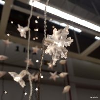 Am găsit recent ceva mișto la IKEA. Ei au un sistem modular de luminițe: cumperi un șirag de LED-uri, cu 12, 24 sau 48 de becuri pe el, și cumperi separat chestii de pus pe acele becuri, precum fulgi de nea, inimioare roșii sau steluțe mari și albe.