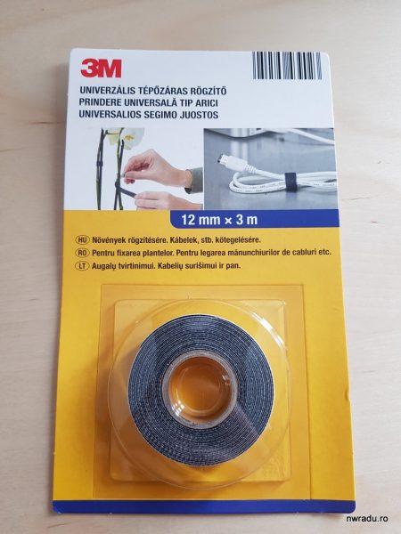 Are 3 metri lungime, 12 milimetri lățime și este gândită pentru legarea cablurilor sau a plantelor sau a altor elemente. Spre deosebire de șoriceii clasici din plastic, poate fi desfăcută și reutilizată după dorință. Pare bună la casa omului, mai ales pentru managementul cablurilor.