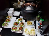 Mâncarea era pe stilul gustare. Eu am luat niște nachos cu sos și un microsandviș cu somon, dar mai aveau alune, salate și o supă de legume. Multe lounge-uri schimbă mâncarea disponibilă în funcție de ora zilei, așa că poate în alt moment apare și altceva.