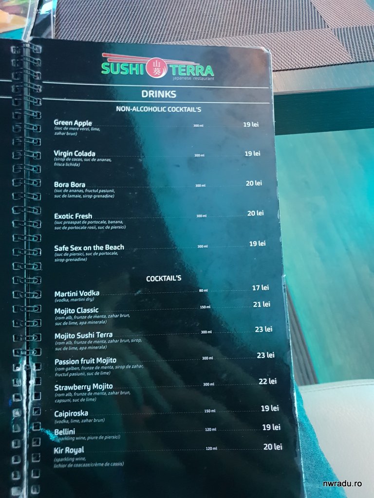 Sushi Terra, cel puțin cel din Dorobanți, arată bine și face sushi bun, dar mai e de lucru la supe, care sunt prea simple, și la porțiile meniurilor. Aș reveni acolo în principal pentru aspectul localului, mi-au plăcut acvariile