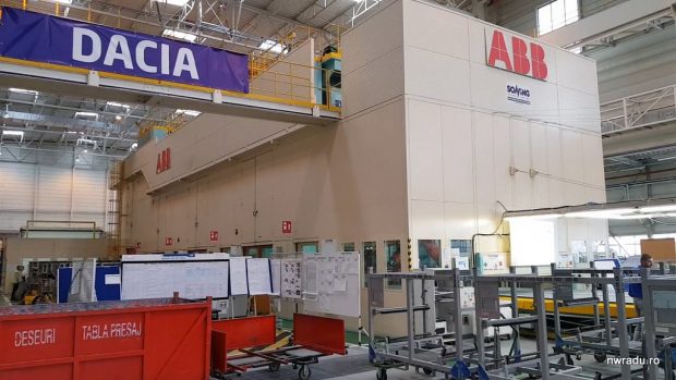 Secția de presaj este impresionantă. Pământul tremură ușor de la zecile de prese ce lucrează simultan, iar când stai lângă una dintre ele și vezi cum modelează o foaie de tablă de parcă ar fi de hârtie simți și mai bine vibrația și puterea ei. Brațe robotice mută rapid piesele dintr-o presă în alta, iar uzina produce componente de caroserie inclusiv pentru alte uzine Renault-Nissan din lume.