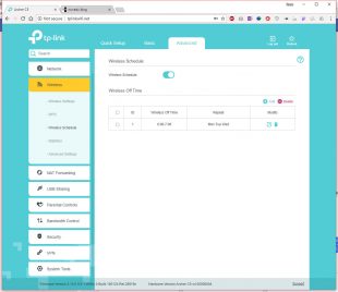 Wireless schedule: poți opri automat rețelele wireless între ce ore și ce zile vrei.