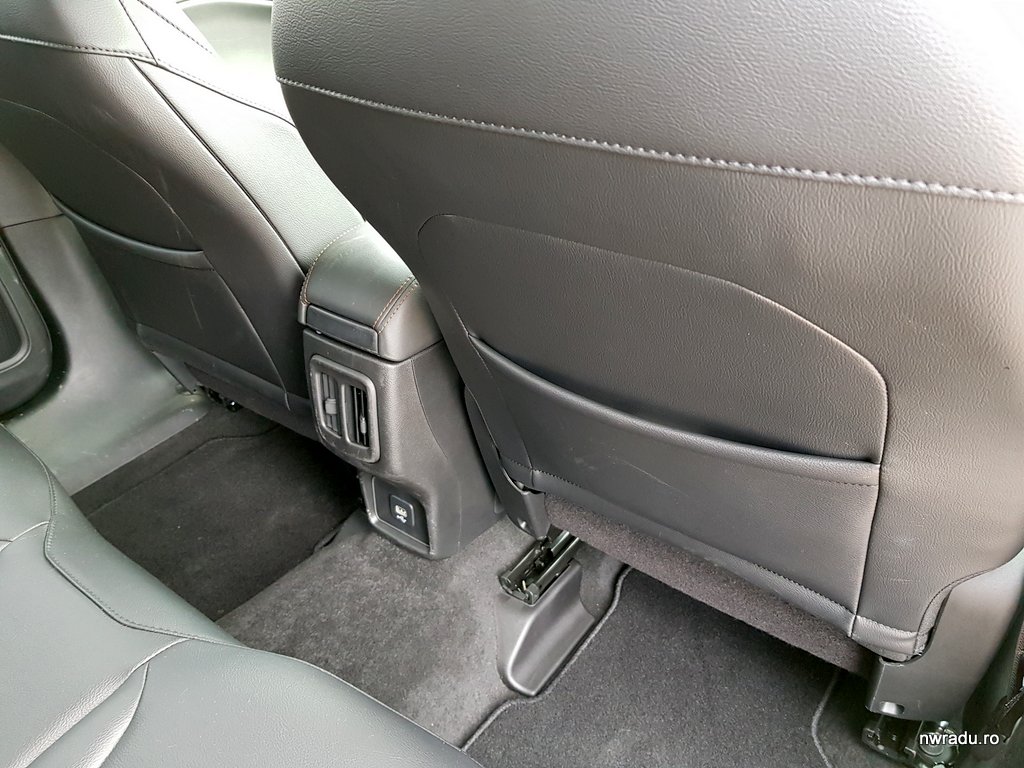 Pasagerii din spate au mult loc la picioare, plus o gură de ventilație în centru, ieșind din cotiera față. Portbagajul nu știu câți litri are, dar este suficient pentru câteva trollere, iar bancheta poate fi rabatată 40-60.