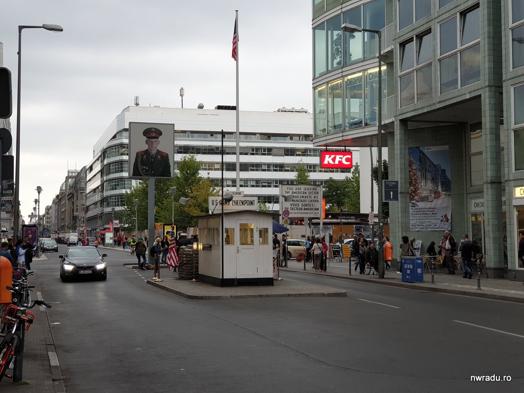 Continuați apoi spre sud și treceți de Checkpoint Charlie (nu uitați să intrați în curtea de acolo pentru a vedea fotografii despre cum arăta acest punct de trecere între cele două Germanii. Puteți citi despre cazuri de oameni ce-au trecut cu succes granița acolo, dar și despre cei ce n-au reușit acest lucru).