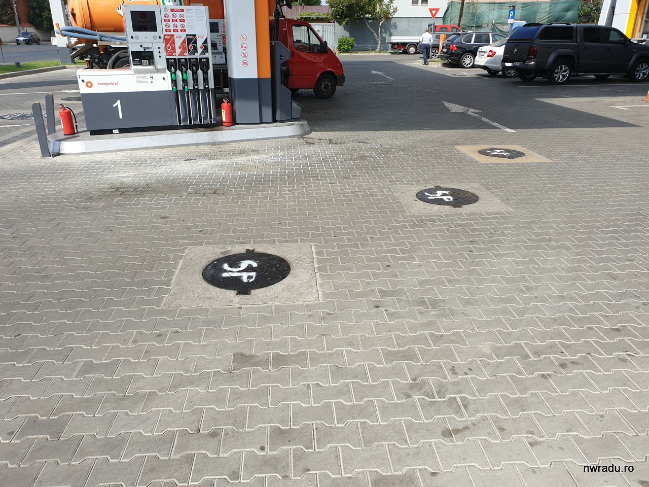Cele patru guri de canal pe care le vedeți tot în dreptul pompelor sunt de fapt guri de vizitare pentru aceste rezervoare, în caz că este nevoie de inspectarea lor sau introducerea unei sonde pentru măsurarea nivelului.