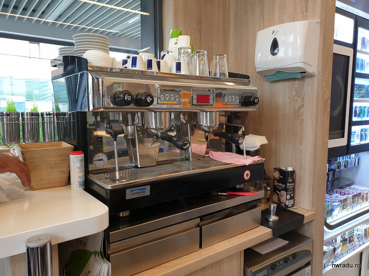 Mi-a plăcut că au espressor semi-automat, unde barista tampează cafeaua și folosește portafiltrul, nu doar apasă un buton și curge băutura. Am văzut cafea Lavazza și sandvișuri bune, asamblate acolo din ingrediente de calitate, plus mâncare caldă, preparată pe loc.