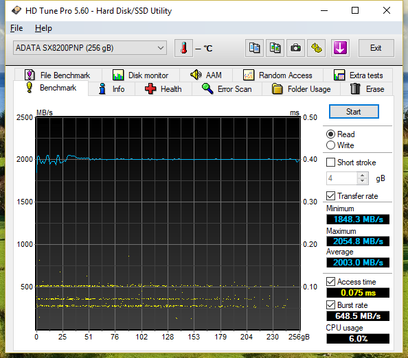 O problemă scoasă la iveală de teste a fost încălzirea destul de rapidă a unității. N-am grafice pentru asta, că îi monitorizam temperatura cu alt program, dar SX8200 Pro se încălzește rapid și își limitează singur performanța. Asta n-ar trebui să conteze în utilizare normală, că nu cred că face nimeni transferuri intensive timp de multe minute în șir, dar dacă veți utiliza un SX8200 Pro, să-i lipiți acel radiator inclus în pachet și să vă asigurați că interiorul PC-ului are ventilație adecvată.
