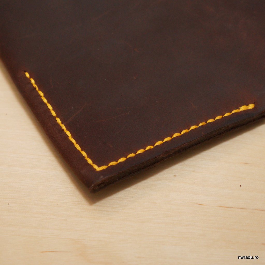 Pielea este moale și grosuță, ceea ce îmi dă impresia de calitate și probabil îi asigură rezistența în timp. Cusăturile par suficient de solide și sper să nu se slăbească în timp. Logo-ul cu elan este ușor ștanțat pe partea frontală. Un articol pe site explică tipurile de piele, cel negru și cel cognac sunt din piele lucioasă.