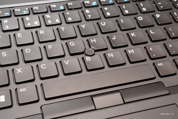 Surpriza plăcută a fost să descopăr că, pe lângă trackpad-ul uzual de sub aceasta, există și un pointstick, acel mic “mouse” amplasat între butoane. Pentru el sunt incluse încă un set de butoane de click, deasupra trackpad-ului clasic.