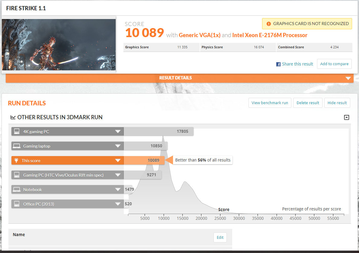 Am rulat testele 3DMark, exact ca pe un laptop de gaming. Puteți vedea mai jos rezultatele și în special comparația scorului cu alte notebook-uri de gaming, unde Dell Precision 7530 stă cot la cot cu laptopuri de gaming 4K.