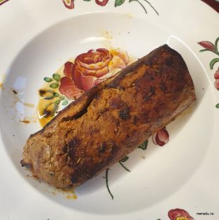Mușchiuleț de porc, același tratament. A ieșit foarte moale, l-am folosit ulterior în special în sandvișuri, de exemplu pâine ciabatta ușor prăjită, unsă cu muștar, apoi salată cu frunze moi, felii de mușchiuleț, brânză ușor topită peste acestea și la final murături, un fel de variantă proprie de sandviș cubano.