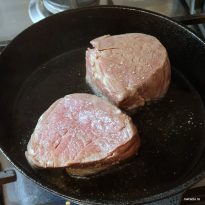 Pe net a vazut ca se incinge tigaia foarte tare, iar apoi 1 minut maxim pe fiecare parte e suficient.