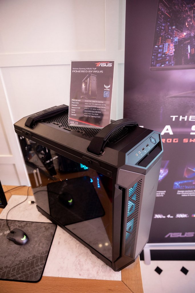 Trecând însă de periferice, restul produselor prezentate de Asus sunt foarte interesante. Am văzut două carcase, primele sub brand propriu ale producătorului taiwanez. Prima se numește ROG Strix Helios și este un mid-tower cu trei laturi făcute din sticlă rezistentă, ca să se vadă componentele din PC și iluminarea acestora.