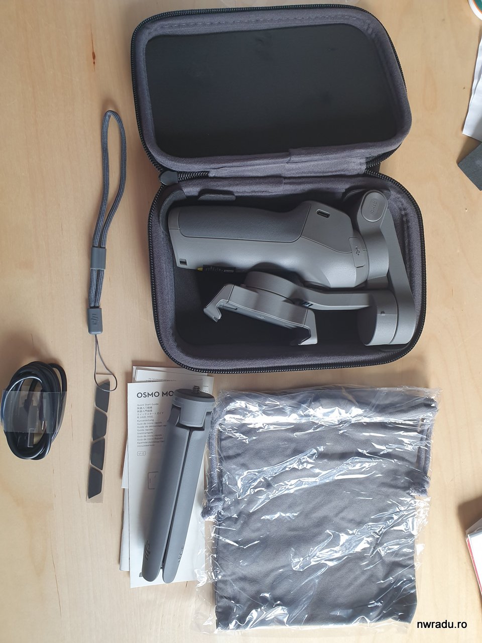 Am schimbat de-a lungul timpului alte trei gimbal-uri. Acesta Osmo Mobile 3 este pliabil, ceea ce înseamnă că pot să-l port mult mai ușor cu mine și deci să filmez mai mult și mai bine (de exemplu diverse hands-on pe la conferințe). Se încarcă prin USB-C, are autonomie de 15 ore.