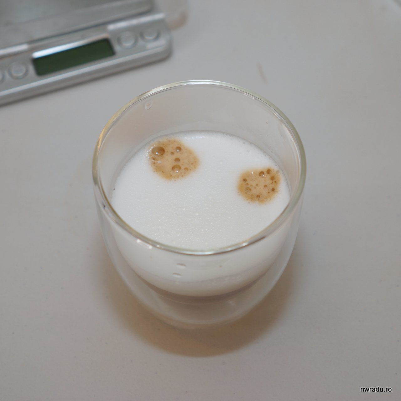 Spuma obținută este una specifică aparatelor automate, adică mai aerată și cu bule mai mari. Nu va așteptați la spuma foarte fină pe care o găsiți doar în cafenelele de specialitate, acolo unde un barista prepară manual acest lapte la țeava cu abur (“panarello”), știind exact cât să o coboare în lapte, la ce adâncime să o țină și cât timp, creând un vortex în lapte și ghidându-se inclusiv după șuieratul acestuia pentru a controla fluxul de abur.