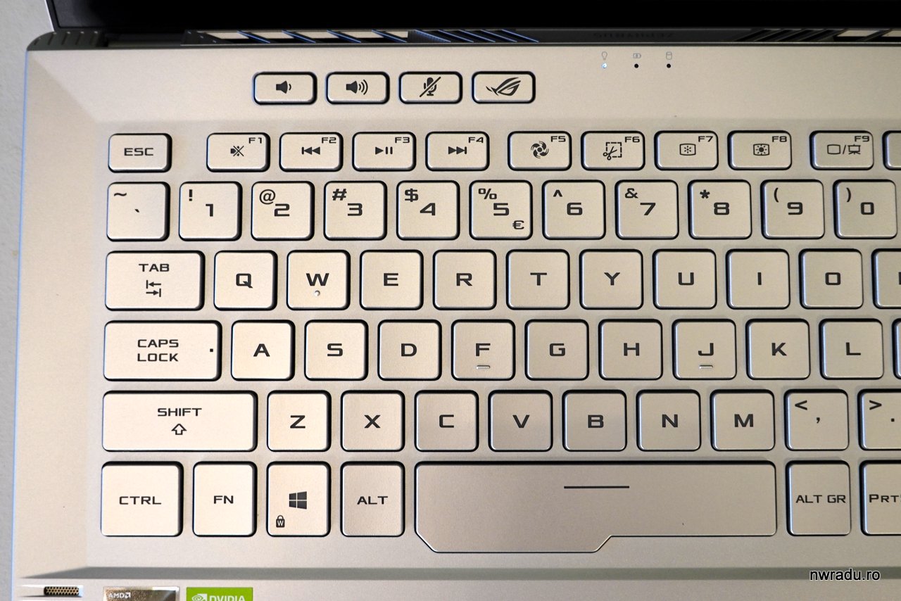 Tastatura este iluminată, dar modelul alb are caractere albe pe taste gri și cu iluminare albă, adică sunt foarte dificil de văzut tastele când iluminarea este aprinsă. Recomand modelul negru de G14, care are un contrast mult mai bun al tastelor în această privință.