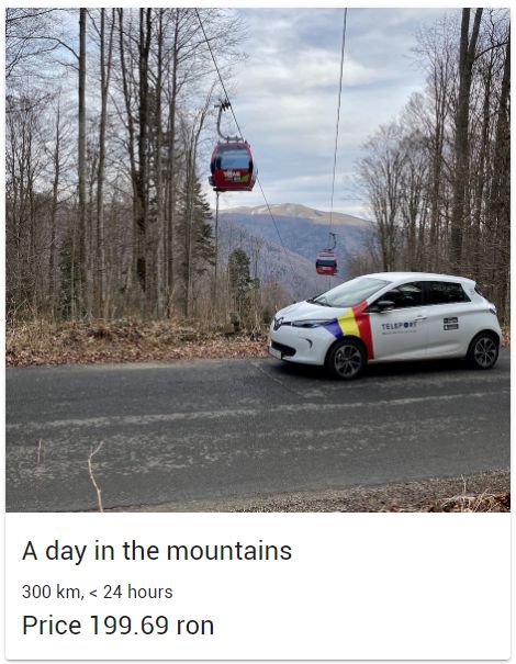 Teleport este însă primul serviciu văzut de mine care-ți spune direct că poți lua mașina mai multe zile pentru călătorii mai lungi. Și altele permit asta, dar Teleport parcă insistă pe această posibilitate, punând pe prima pagină niște simulări de tipul “Teleport la munte și la mare”: