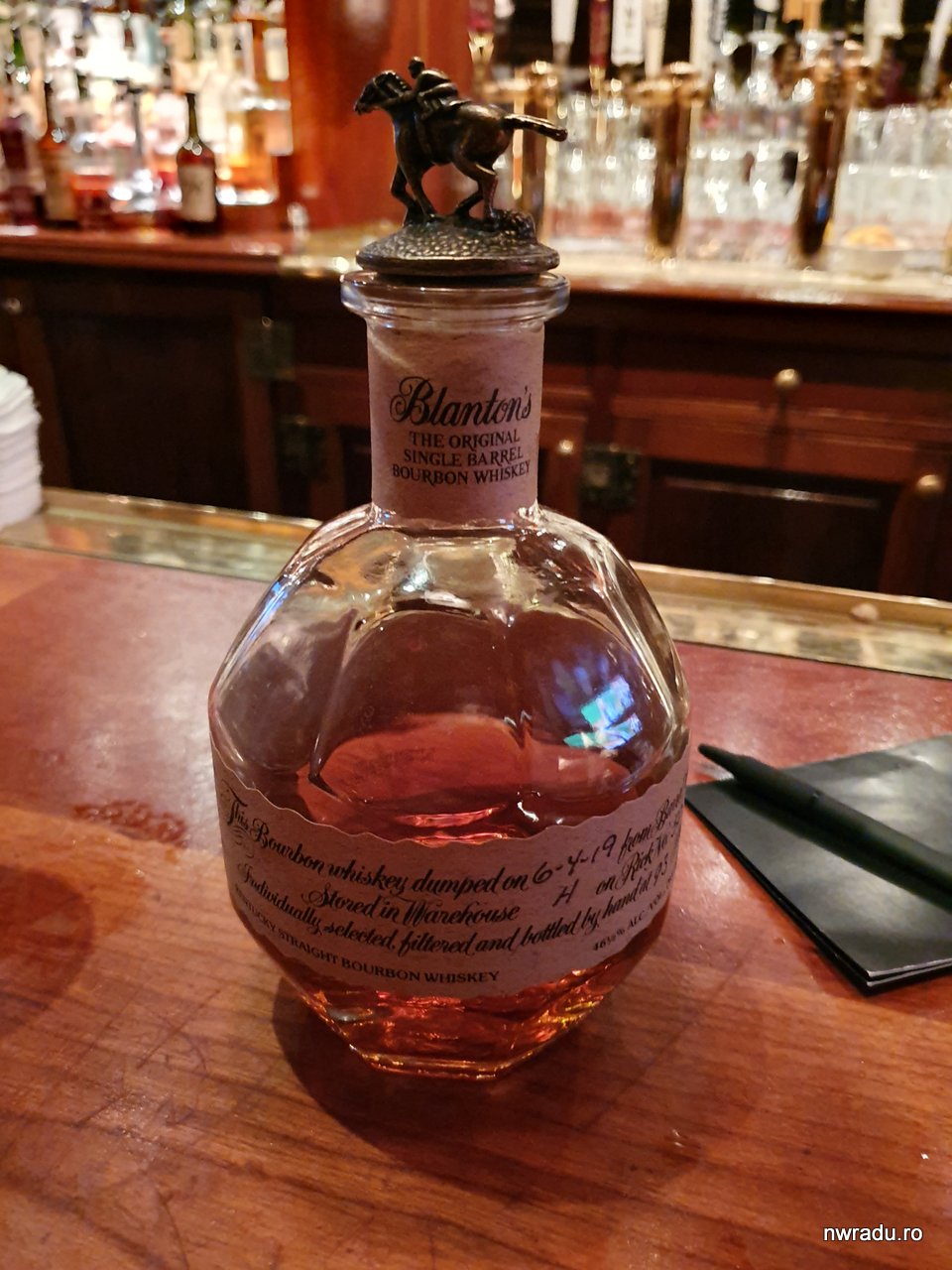 Și mi-a dat Blanton’s Single Barrel. Am făcut poză la sticlă, să o țin minte. Mi s-a părut excelent.