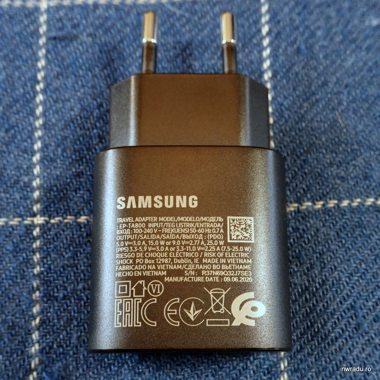 Telefonul, un încărcător pe cablu de maxim 25 W, cablu USB-C la USB-C și căștile pe fir AKG negre cu în total 3 perechi de adaptoare siliconice. Nu, nici o husă de 2 dolari în cutie, ca să nu scapi telefonul până cumperi una.