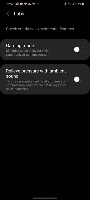 Mi-a plăcut interfața. Dacă le veți utiliza cu un telefon Samsung, căștile Buds Live vor fi imediat detectate de telefon atunci când le scoți din cutie. Programul de control este Galaxy Wearables și acolo poți vedea starea bateriei și configura un equalizer, dar nu sunt multe alte setări.