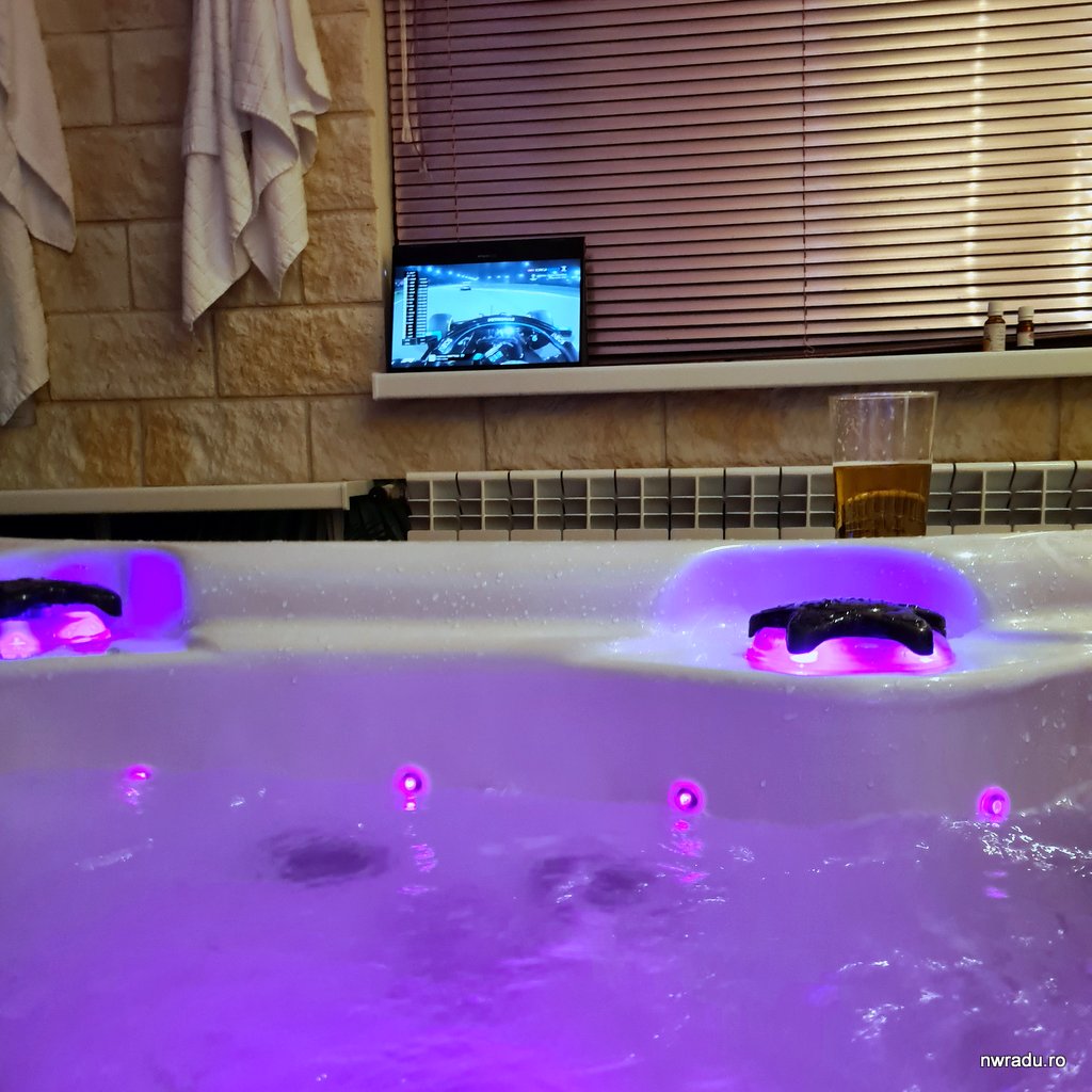Iar în caz că vă întrebați unde ar fi util un 2-în-1, iată o fotografie cu mine stând într-un jacuzzi și uitându-mă la cursa de Formula 1 pe acest Zenbook Flip UX363. Am pus laptopul în mod “cort”, că doar așa încăpea pe marginea ferestrei. Un moment când a fost util.