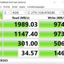 Stocarea (un SSD de 512 GB PCI-Express 3 x2 pe modelul testat de mine, cel 1 TB are PCI-Express 3 x4) a fost mediocră. Pot numi așa 2000 MB/s citire și 1000 MB/s scriere doar prin comparație cu alte laptopuri ce au stocare mai performant, dar în utilizare oricum nu contează, că și 1000 MB/s scriere secvențială este peste orice nevoie uzuală.