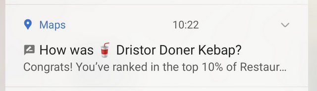 După ce-am revenit acasă, Google Maps m-a întrebat cum mi s-a părut Dristor Doner și dacă vreau să las un review.