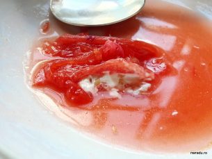 Da, și noi am râs între noi după ce ne-au așezat-o în față. A fost însă surprinzător de bună. Adică dacă aș putea face acasă o roșie la fel, aș servi-o așa invitaților și toți ar zice ce gustoasă poate fi o simplă roșie cu niște “condimente”.