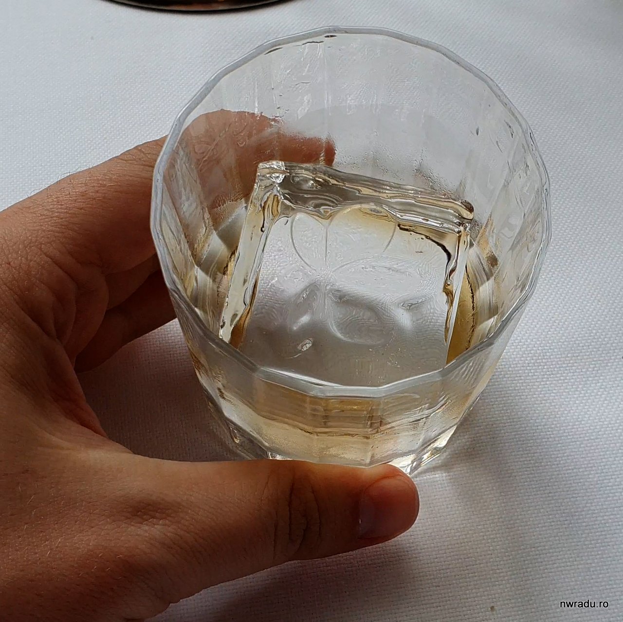 Mi-a plăcut și că marele cub de gheață pus în pahar avea logo-urile Eleven Madison Park pe cele 6 fețe ale sale. Cei de la restaurant au comandat inclusiv forme de gheață pe design-ul lor. Am întrebat ce-i cu logo-ul, care-i format din niște frunze și fructe. Mi s-a spus că sunt frunze și fructe care cresc în copacii din Parcul Madison, vizavi de care este restaurantul.