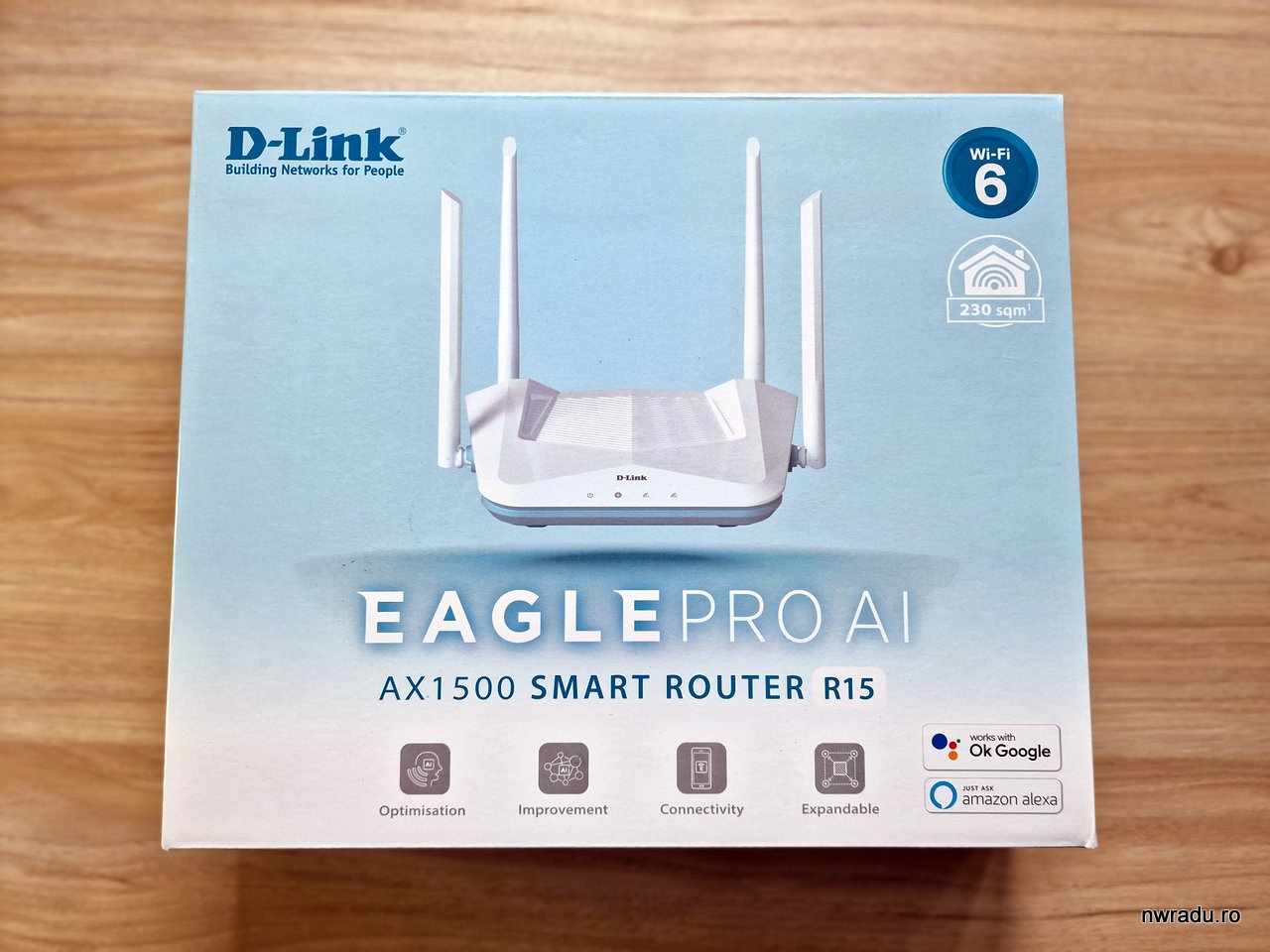 D-Link Eagle Pro AI este un router Wi-Fi 6 cu rating AX1500 nou-lansat pe piața noastră, cred că am fost primul care l-a testat. Este un model performant de apartament de 2-3 camere, foarte rapid în special pentru torrente, în caz că vă interesează asta, iar prețul de 199 lei îl face foarte competitiv în piață.