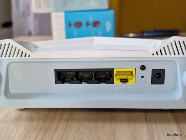Pe spate are 3 porturi 10/100/1000 Mbps și un port WAN Gigabit. Cele patru antene nu sunt detașabile. Alte detalii găsiți pe site-ul oficial D-Link. Există și aplicația de mobil Eagle Pro AI pentru configurare și management, iată varianta de Android și cea de iOS.