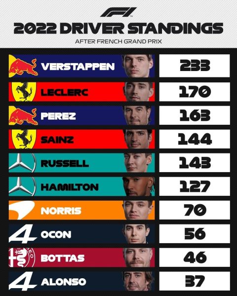 Cum spuneam, o cursă nememorabilă, dar mi-am propus ca anul acesta să-mi zic părerea despre fiecare cursă pe care o vizionez și iat-o pe aceasta. Ceva interesant se întâmplă însă în clasamentul echipelor, unde Mercedes s-a apropiat la 44 de puncte de Ferrari și lupta pentru locul 2 devine mai aprigă. Mercedes obține constant puncte. Ferrari sunt mai buni, dar cu probleme tehnice. Alpine vs McLaren este un alt duel de urmărit.