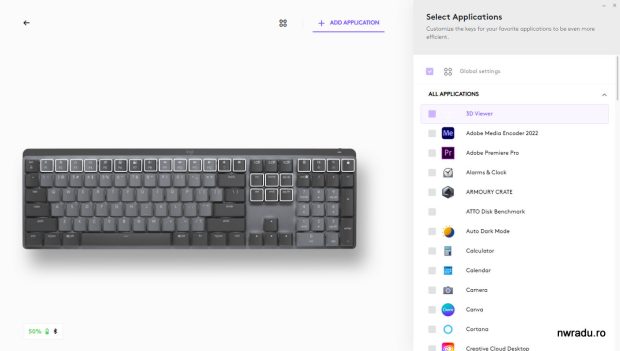 Funcția de schimbare a luminii este cea mai subțire din program. Logitech pare să fi împrumutat de la tastaturile de gaming ideea că iluminarea trebuie să suporte câteva efecte de joc de lumină, dar mie nu mi s-a părut nevoie. Poți alege din 6 moduri de joc de lumini, inclusiv breathing sau waves. Mie doar cel clasic Static mi s-a părut cu adevărat util. MX Mechanical este o tastatură de muncă, de productivitate, nu de show luminos, așa că n-am avut nevoie de valuri sau respirație pe ea, iar în plus aceste efecte arată mai bine pe o tastatură RGB cu iluminare mult mai puternică.