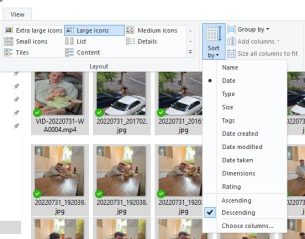 Dacă aveți planuri similare, puteți selecta anumite date (de exemplu un anumit an) dintr-un folder uriaș de fotografii în Windows Explorer folosind meniurile Sort By (alegeți Date și Descending) și Group by (alegeți Date):