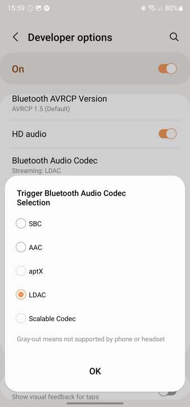 Dar îl ai și în telefon? Aici este mai complicat. LDAC face parte din Android încă de la versiunea 8, adică nu ține de vreun chipset sau alt hardware specific, dar producătorii de telefoane care doresc să-l activeze trebuie să plătească o taxă către Sony. Nu știu valoarea ei. Majoritatea flagship-urilor și a mid-range-urilor moderne o plătesc. N-am găsit o listă completă de telefoane compatibile LDAC, dar aceasta de aici include destul de multe modele și mai sunt și altele.