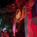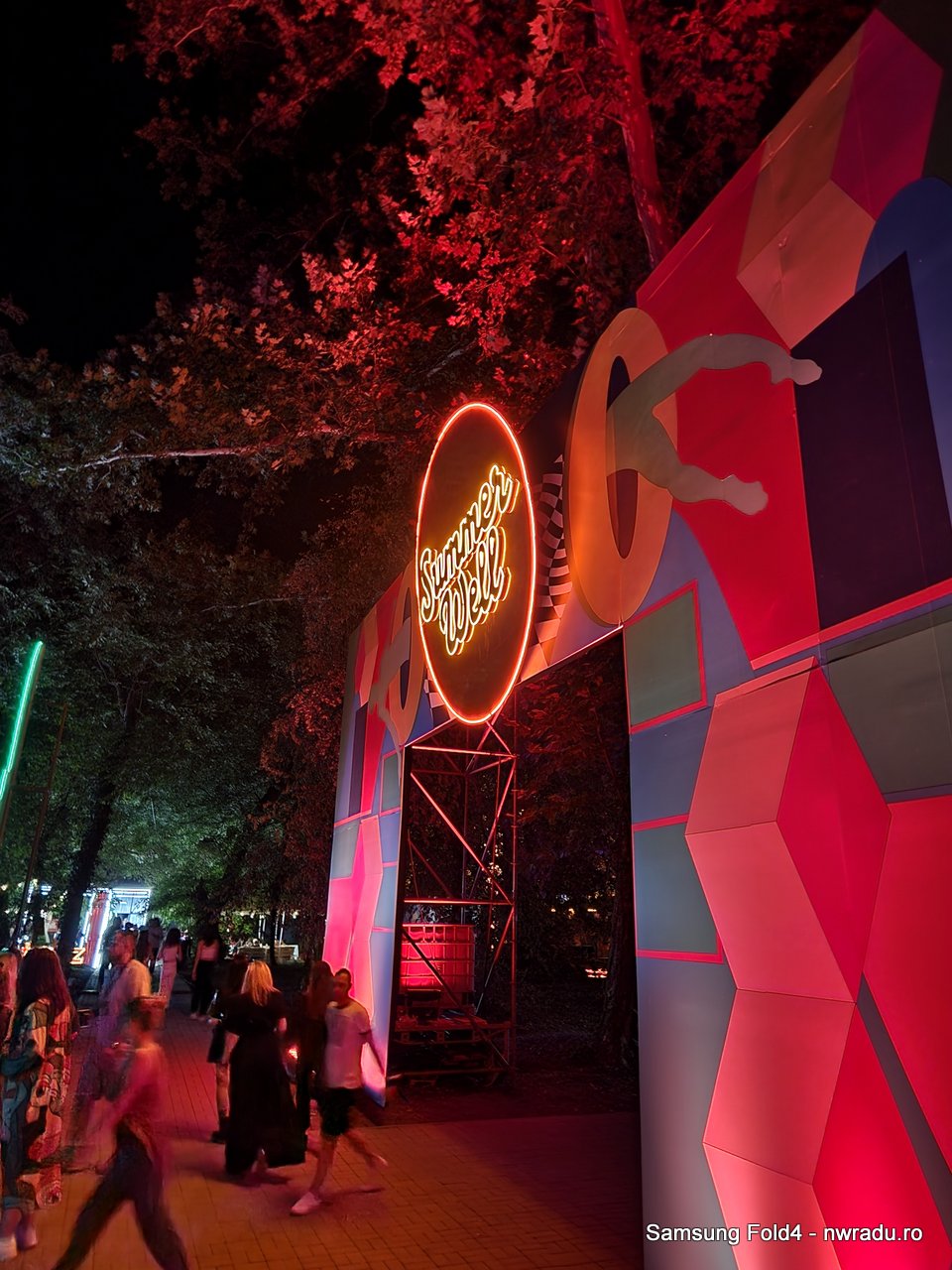 O imagine care-mi place mult este cea de mai jos. Persoanele de pe pod se mișcau, dar apar înghețate în imaginea finală deși a durat vreo 2-3 secunde realizarea ei. Nu știu dacă știți acea zonă, dar este și acolo foarte întuneric, sunt doar câteva lumini ambientale pe la baza podului. Proiecția aceea cu Summer Well este făcută pe un jet de apă dintr-o arteziană de lângă pod.
