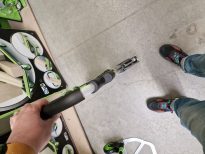 Așa că, în practică, am folosit-o mai aplecat, ca să o țin la 45 de grade. Mânerul nu-i suficient de lung încât să o poți trage după tine fără să te apleci, decât dacă ai 1,2 metri înălțime sau ceva așa. Până la urmă am improvizat ceva, i-am legat de mâner un soi de mâner suplimentar din cordelină (merge și bandă textilă sau altceva mai lat, ca să fie ușor de apucat, nu o sfoară chioară) și o trăgeam de acolo.