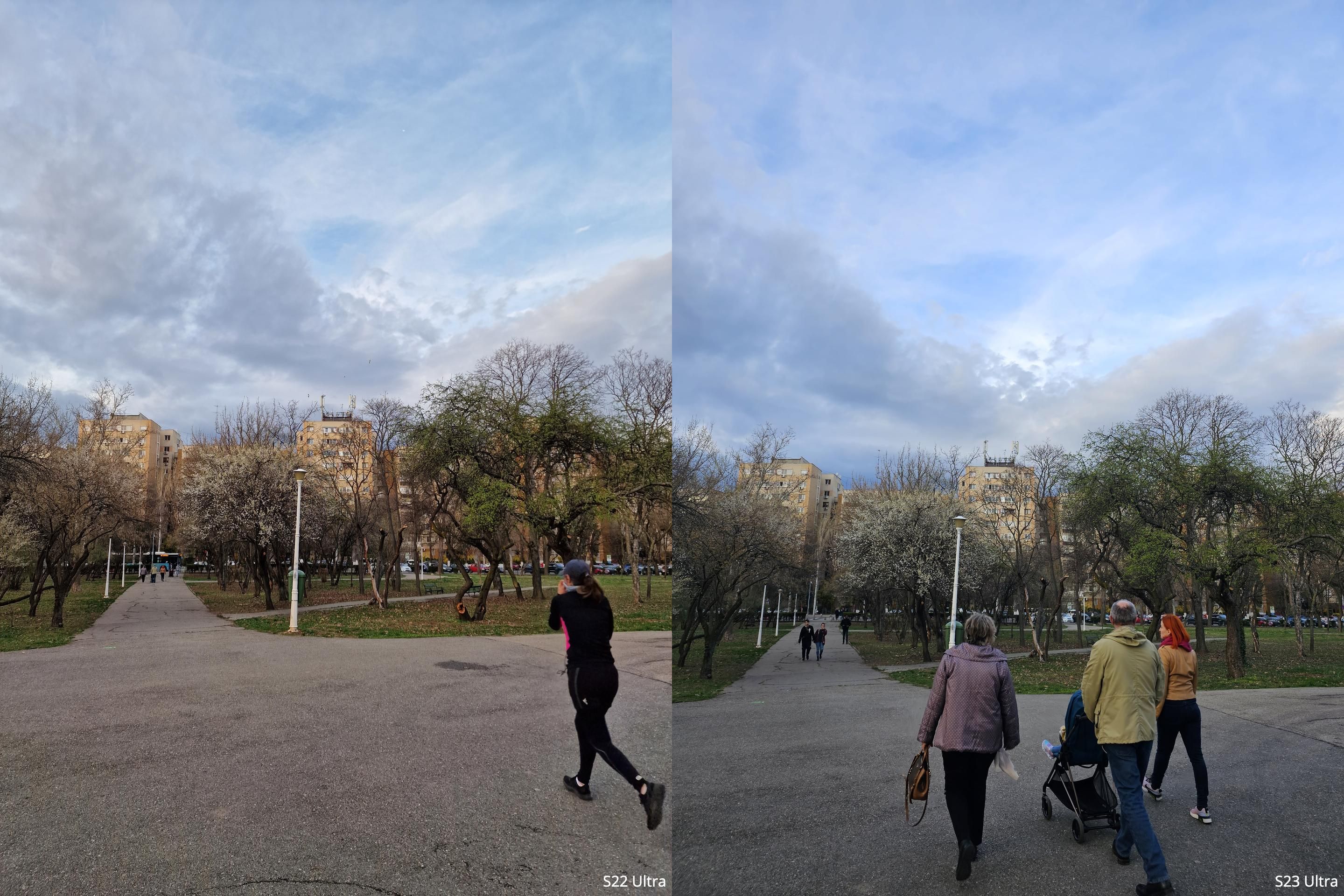 Ce am observat însă este că S22 Ultra suprasaturează uneori culorile. Cred că n-aș fi observat asta niciodată fără să compar direct telefoanele, dar se întâmplă în anumite cazuri precum mai jos. Aș spune că S23 Ultra obține nuanțe mai realiste și îmi dau seama de asta doar pentru că cerul nu era atât de albastru în acea zi.