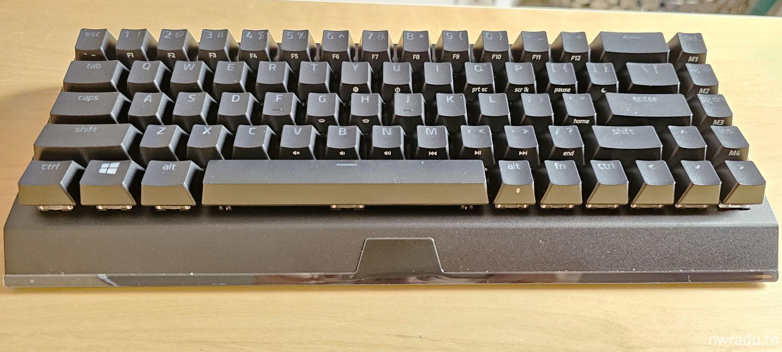 Se numește Blackwidow v3 Mini, cu Mini de la faptul că este ceea ce se numește o tastatură 65% în mod uzual. Adică în lume există tastaturi full-size, apoi tastaturi tenkeyless care nu au bloc numeric, apoi tastaturi tot mai mici. Cele 65% nu au tastele F1-F12 (dar au shortcut-uri pentru ele, desigur), dar au tastele săgeți. Există tastaturi chiar și mai mici, de exemplu fără taste săgeți. Cui îi sunt utile? Nu știu, dar există, deci există și o cerere.